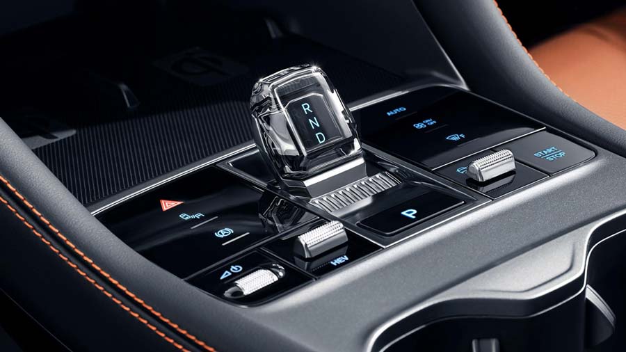 Thiết kế nội thất của BYD Sealion 6 lấy cảm hứng từ vẻ đẹp của đại dương, thể hiện rõ ở cần số pha lê quyến rũ. Các nút chức năng bao quanh tính năng tuyệt đẹp này và tăng thêm tính thẩm mỹ tổng thể cho BYD Sealion 6. Nó cũng cung cấp khả năng điều khiển dễ dàng trong tầm tay bạn.